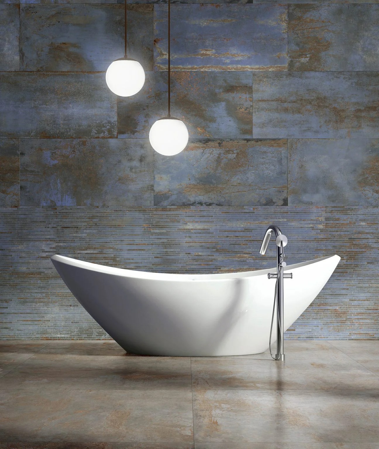 Rozsda, karcolások, rétegződés. A Flatiron megragadja az időnek kitett fém élő anyagát. Minden felület egy átmenetről, egy átalakulásról árulkodik. Oxidált fémes megjelenés, erős kromatikus variációkkal és a rozsdától az ipari kékig terjedő palettával.
